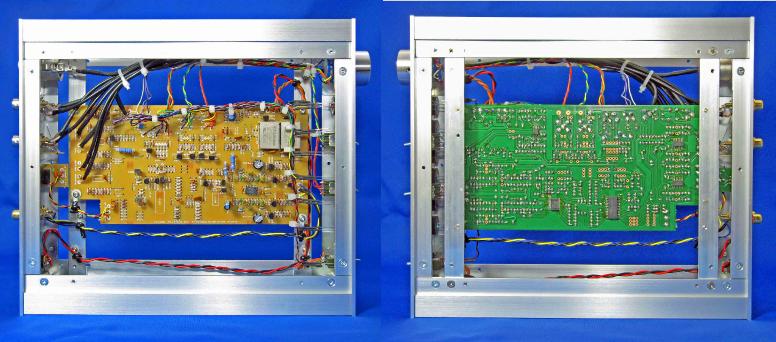 ・ケース:タカチ電機工業のOS70-26-23を使用します。サブシャーシーAC26-23を用いると制約を受けるので、W15mm x T3mmのアルミ押し出し材でサブフレームを作成し基板を取り付けます。背面の入力端子からプリント基板までは1.5C2Vで配線します。同軸ケーブルを配線する際に伝送インピーダンスが乱れますので線材長を300mmと長く取り不整合を吸収させます。