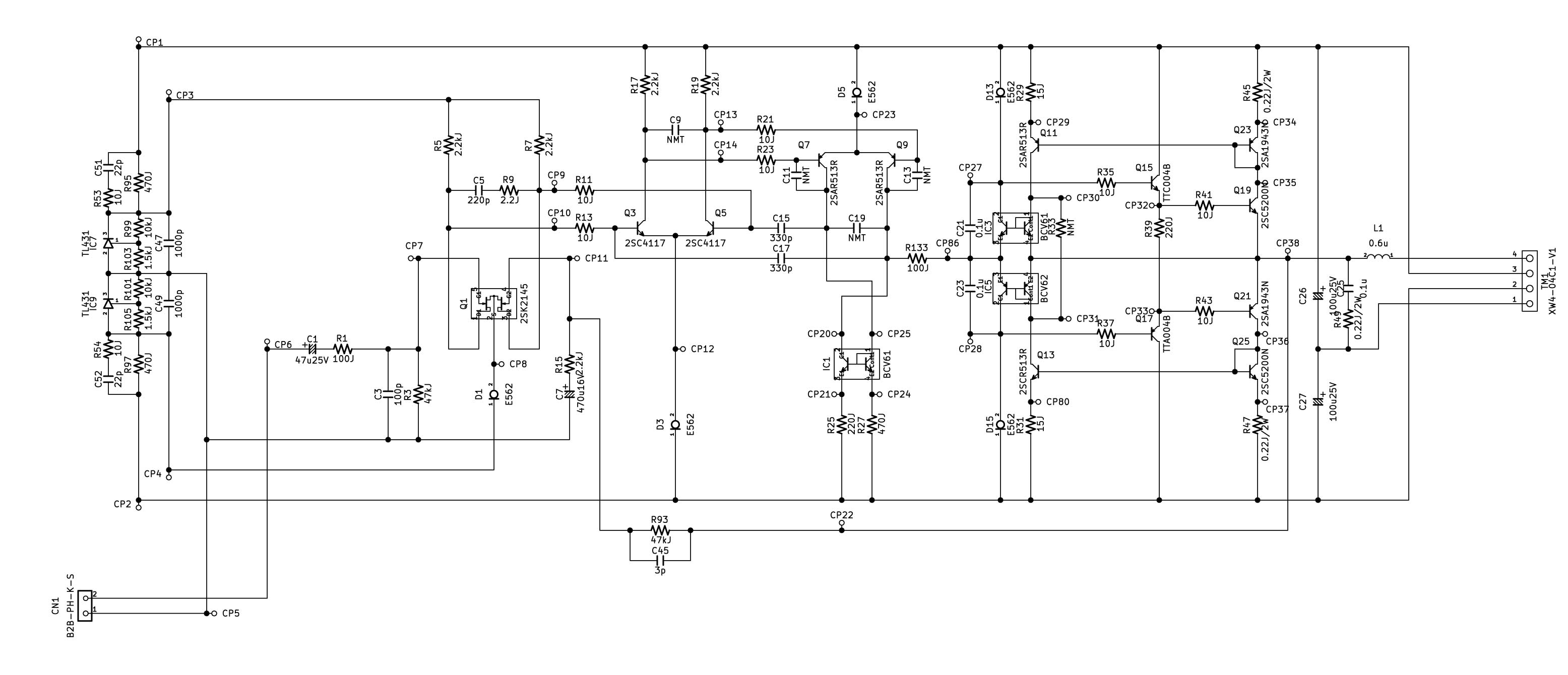 Lchの回路図を示しましたが、Rchも同じ回路でCR No.を別途割付、KiCADで作画しました。