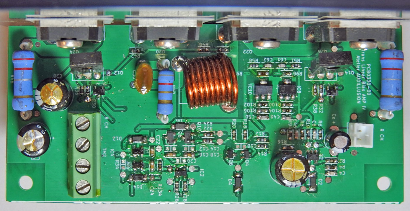 TLB 1で、瑞々しい・活き活きしている・透明感がある・より自然 な音質を確認し、初段をTL431定電圧電源のJ-FETを加えTrans Linear Bias AMP3で、さらにこれらの傾向が向上しました。電圧増幅段を差動構成とした、今回のTrans Linear Bias AMP4では、聴感の静けさが上増して透明感がさらに向上し、音像がより自然に浮かび上がり、音場の再現性も向上した様に聴こえます。